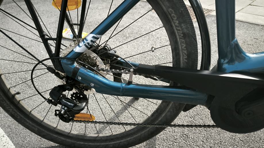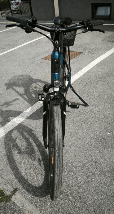 Prodajem navedeni e bicikl, L veličina rame. Bicikl kupljen 26.04.2024. u trgovini rog-joma te ima pripadajući račun i garanciju koja vrijedi do 26.04.2026. Upravo napravljen veliki servis, stavljen novi lanac za e bicikl i novi zupčanik. Prešao do sada 4233 km, u stanju pali-vozi. Baterija i sve na biciklu funkcionira i dalje kao prvog dana. Na bicikl stavljena stražnja košara.
