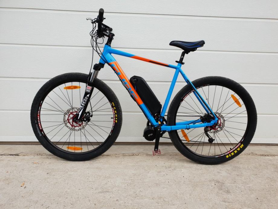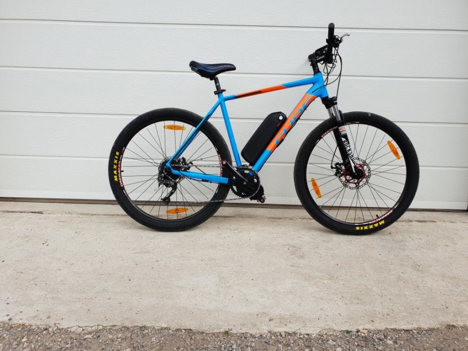 Prodajem električni bicikl cube sa midrive pogonom Bafang 750w među naj boljim srednjim pogonom na svijetu.9 brzina manualnih te 9 brzina motora,prednji disc 203mm zadnji 180 plivajuči shimano slx stražnji mjenjač.gume maxxis 29×2.5 alexrims felge Bicikl ide 55kmh na sat te savladava velike uzbrdice bez okretanja pedala ima gas ručkicu te se može koristiti samo na elektro pogon!!!Baterija panasonic li-ion 48v 14.5ah te omogučuje biciklu domet od 60 do 100km.Rama je 23 incha za osobe od 180-200cm te kotači 29 cola.