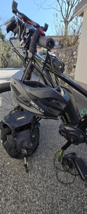 Prodajem električni bicikl iz naslova, 10280 km, kotači 29 incha (veličina M), proizvedena 2018 godine, očuvan i ispravan, Bosch baterija i elektronika, baterija provjerena u servisu na 90% kapaciteta, u servisu izvršen kompletan servis i izmjena modulatora načina vožnje. Uz bicikl ide lokot za zaštitu od krađe, nosač za mobitel, pumpa za prednji amortizer, priključak za prikolicu, kaciga i torba. Zvati na broj 097/7904463. Bez zamjena.