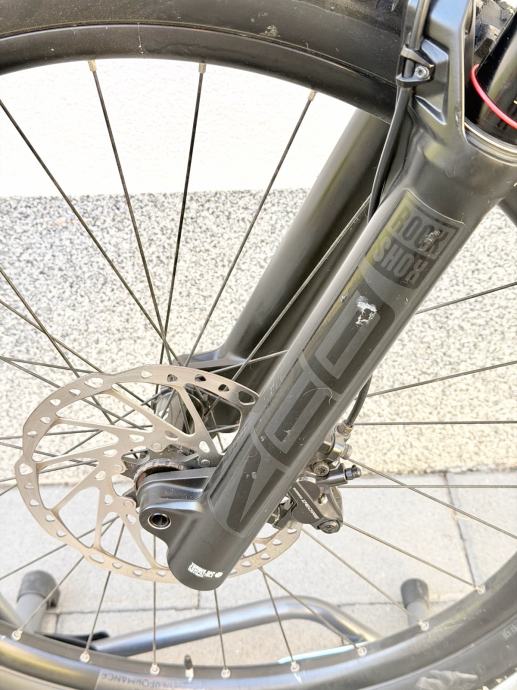 Prodajem Cube Stereo 160 električni brdski bicikl s kotačima 27.5 inča. Radi se o full suspension modelu s 160mm hoda ovjesnog sustava, što ga čini prikladnim za zahtjevniji teren. Pogonski sustav je Bosch motor s baterijom kapaciteta 750Wh, a mjenjač je 1x12 brzina. Okvir je u bež/sand boji s crnim detaljima. Gume su Maxxis, a kočioni sustav je disk s obje strane. Bicikl je rabljen.