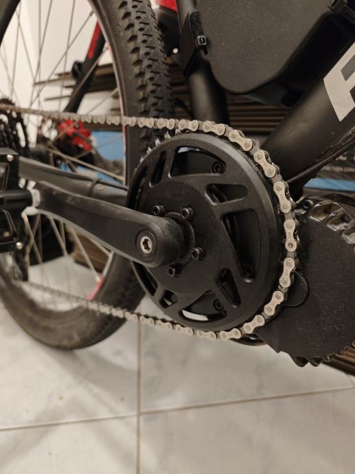 Motor je Bafang BBSHD sa aluminijskim 42T lancanikom i offsetom za bolji chainline.