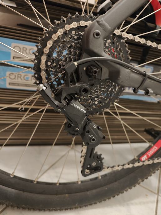 Shifter i kazeta je Microshift Acolyte, specificno stavljen 8 brzina jer lanac za 7/8 traje znatno dulje a kazeta ima sirok 12-46 raspon.