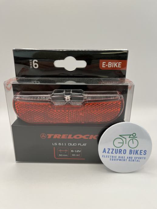 Trelock stražnje svjetlo Duo Flat LS 611 – za E-Bicikle (50 mm montaža na prtljažnik) je moderna stražnja svjetiljka za e-bicikle (6–12V), dizajnirana s naglaskom na kompaktni, plosnati dizajn koji se savršeno uklapa u siluetu bicikla. Zahvaljujući inovativnoj svjetlovodnoj tehnologiji Trelock, svjetlo pruža ujednačenu i snažnu vidljivost, posebno korisnu u slabije osvijetljenim uvjetima.