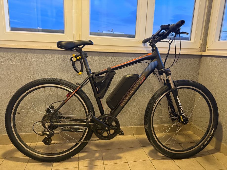 Uz bicikl idu: prednje i zadnje svjetlo, punjač, lokot,zvonce, torbica za mobitel.