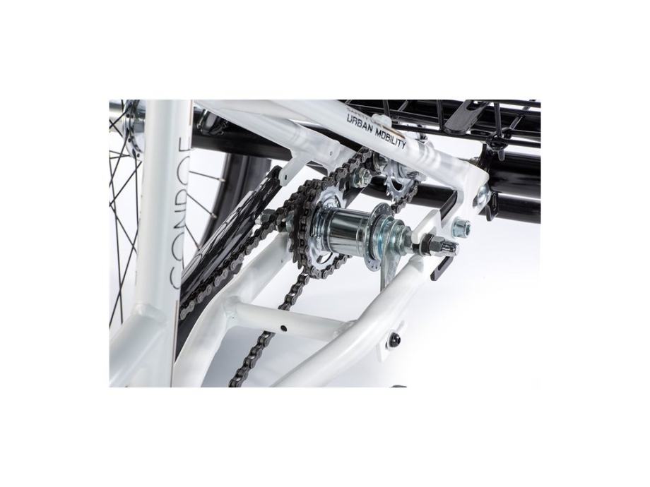 Trokolica ima prednji motor BAFANG 250W, baterija LG 16 Ah/576 Wh i jednu brzinu.