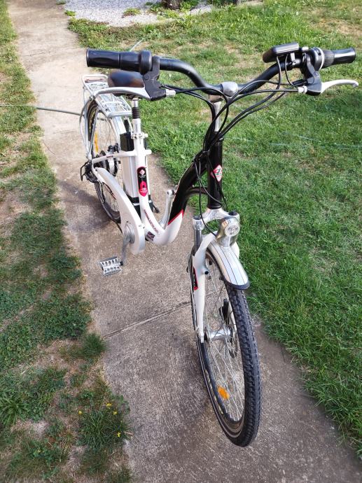 Prodajem električni bicikl CILO RELAX švicarske proizvodnje. Rama je ženska, kotači 26 cola, baterija 36V - odlična, prednje i zadnje svjetlo se pale pritiskom na crveni gumb na desnoj strani volana. Disk kočnice, korpa, nove gume, prednji amortizeri i amortizer u sjedištu.