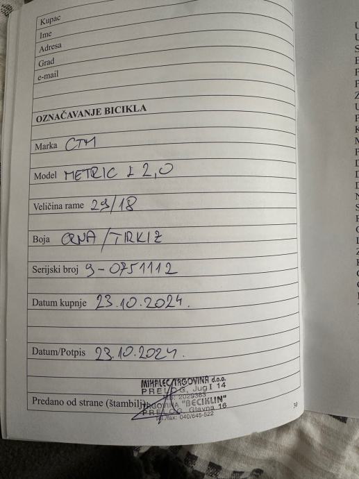 Prodaje se novi el. bicikl model CTM Metric lady 2.0 kupljen 23.10.2024 godine. Bicikl ima samo 20km. Razlog prodaje je nemogučnost vožnje zbog koljena. Bicikl od tog dana stoji u garaži. Račun, papiri i garancija koja još traje. Trenutna cijena takvog modela je 2400€