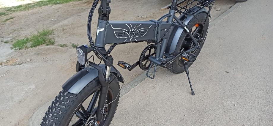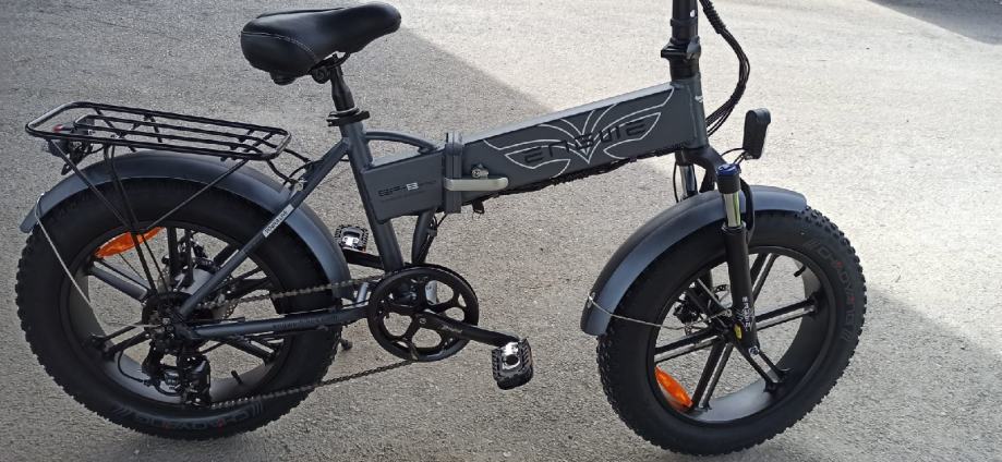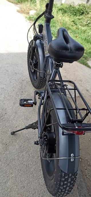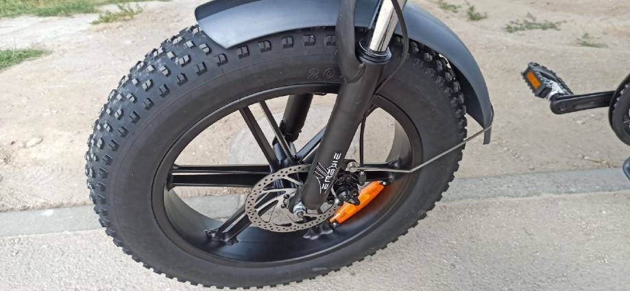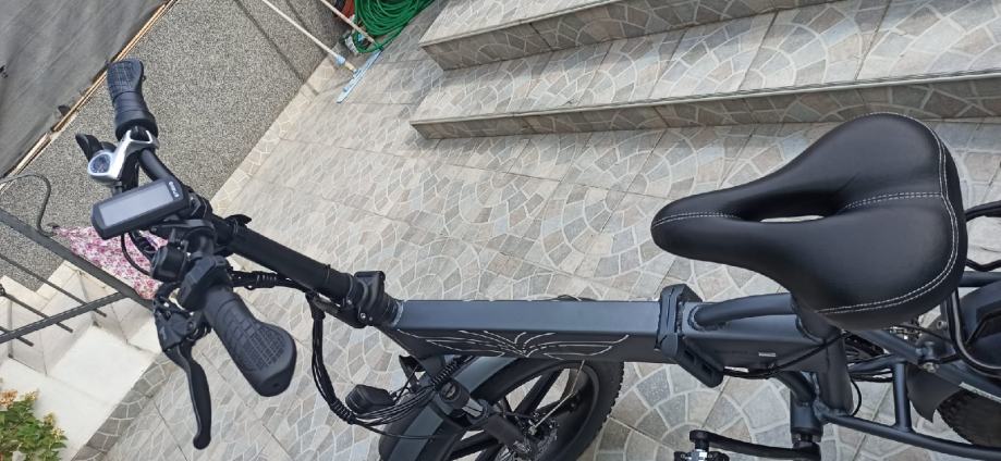 Ima debele gume pa je pogodna za brodske terene ,bicikl je brz moze Ici do 45 km po ravnom ima jak motor..Ima 5 modela voznje,disk kocnice,moze se vozit osoba do 150 kg.Bicikl je ko nov tek kupljen..