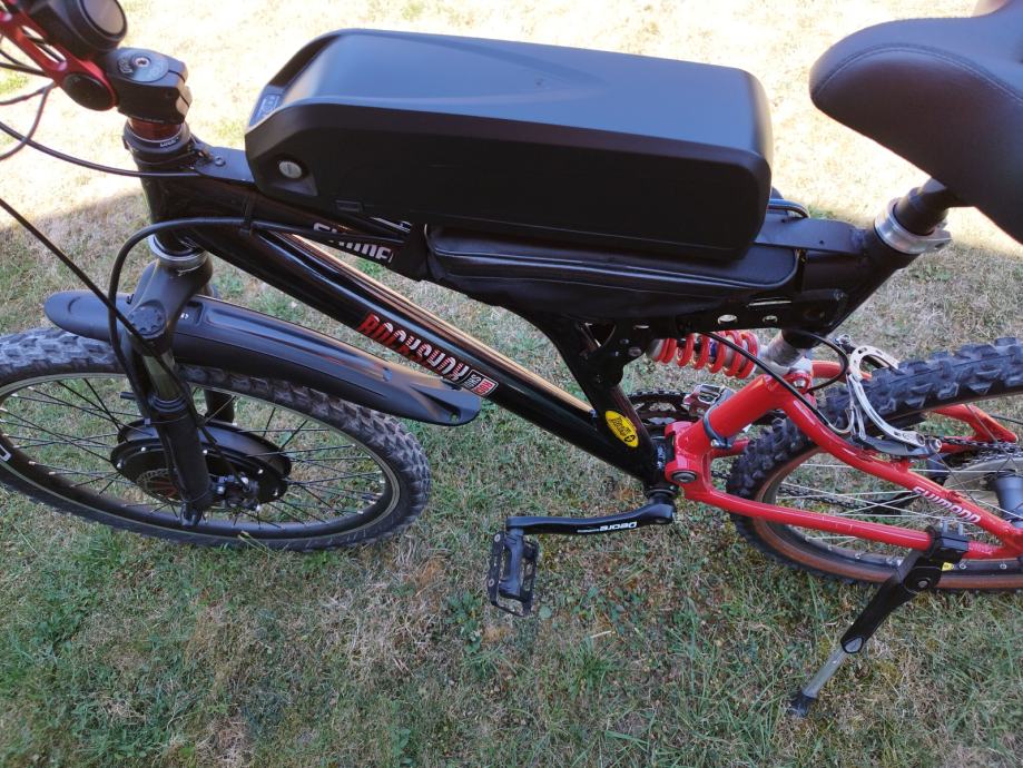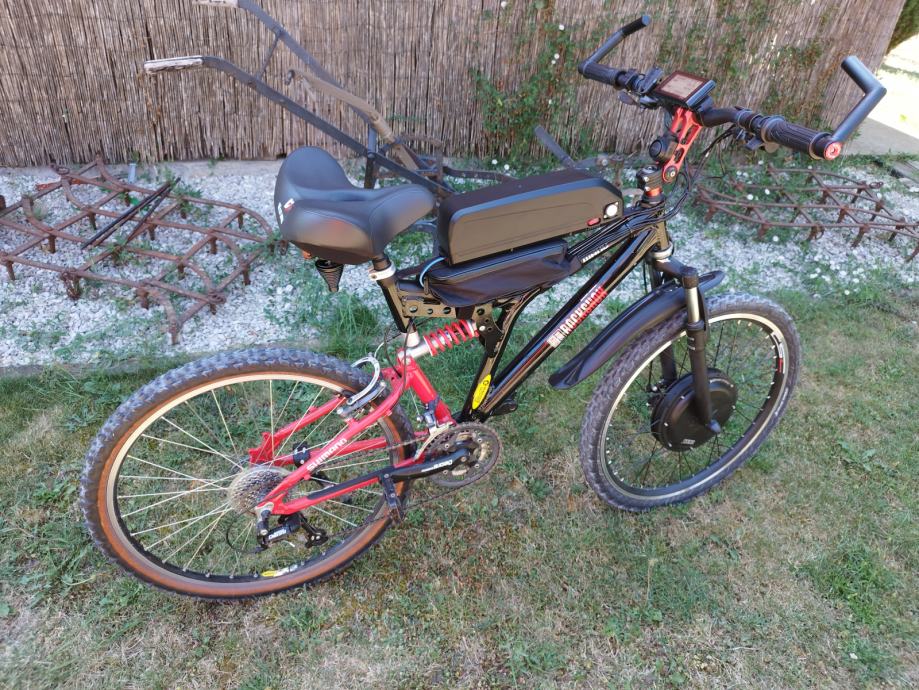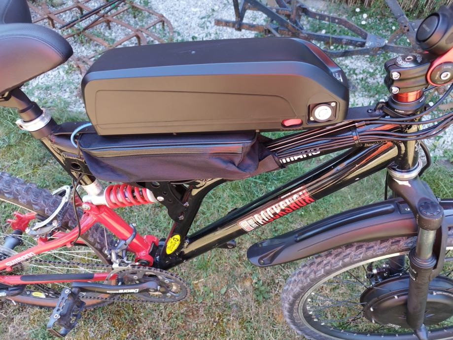 Prodajem električni bicikl sa srednjom i prednjom suspenzijom, ROCKSHOK rama, veličina L, motor 1000W, 48V - Baterija kapaciteta 12,5 AH.