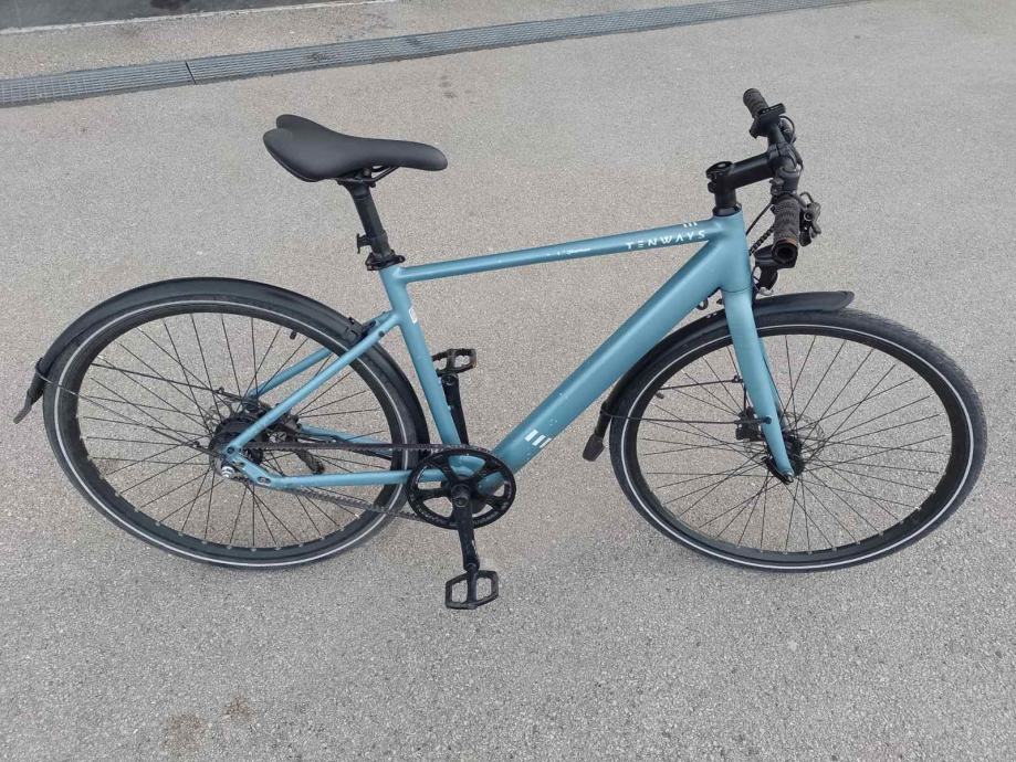 Električni gradski bicikl Tenways C-GO 600 u izvrsnom stanju sa pređenih 1700 km. Okvir bicikla je od lagane aluminijske legure. Baterija je elegantno skrivena u donjoj cijevi, što rezultira glatkim površinama i čistim linijama. Snaga baterije je 252 Wh. Motor je sa 3 stupnja pomoči, glatke i nevidljive izvedbe, tih čak i pri maksimalnoj izlaznoj snazi a nalazi se u stražnjoj glavčini, snage je 250W. Brzina je limitirana na 25 km/h. Motor se pokreče preko vrlo precizanog senzora zakretnog momenta koji donosi trenutni, prirodan osjećaj pomoči sa svakim pritiskom na pedalu. 3 razine pomoči el. motora upravljanje na volanu sa prikazom brzine, prijeđenih kilometri, kadence, napunjenosti baterije..... domet sa el. pogonom do 100km ovisno o jednom od 3 birana stupnja pomoči. Bicikl ima el. rasvjetu, alu blatobrane, nogar, hidraulične kočnice te izdržljiv, pouzdan i tih Gates Carbon Belts (karbonski remen bez održavanja) umjesto lanca. Težina bicikla je 15 kg gume 40-622 (700x38C). Cijena je 600 Eura.