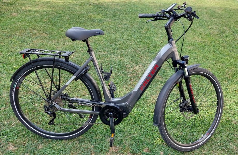 Električni bicikl marke Falter,Njemačke proizvodnje . Presao samo 800km, baterija 500wh, motor shimano 250w -70nm novije generacije, nosivost do 140kg, ograničenje brzine do 25km/h, kotači 28", okvir 53cm, ključ i punjač idu uz bicikl, podesiv korman, deore shimano oprema, bicikl je kao nov.