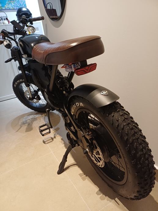 Riječ je o snažnom i iznimno udobnom električnom biciklu s motorom od 1500 W (2100 W peak), širokim moto sjedalom za dvije osobe i prednjim te stražnjim ovjesom koji pružaju izuzetno ugodnu vožnju.