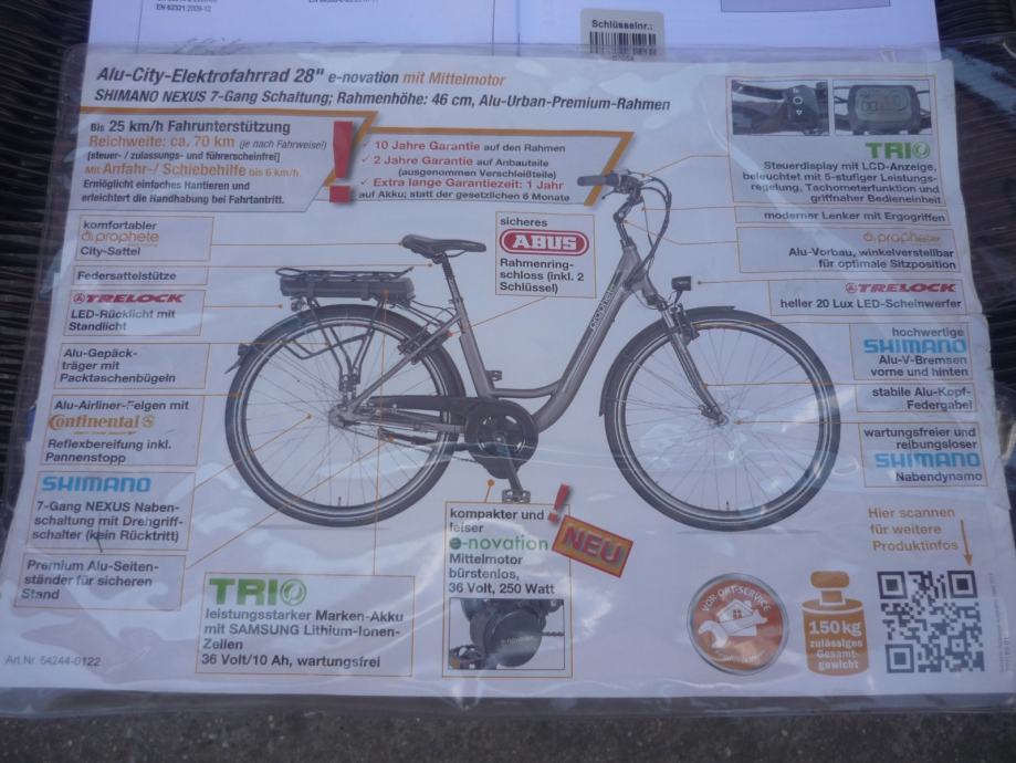 Prodajem navedeni bicikl! Bicikl je 2014 god kupljen u Njemačkoj posjedujem sve papire! Plačen 1400 eura.Rama je aluminjska 46cm(10 god garancija).Ima amortizer u cjevi sjedala,podešavajuči aluminijski pakntreger za bateriju,duple felge sa Continental City ride gumama,zadnja glava je shimano nexus sa 7 brzina(u glavi),teleskopski podešavajuči nogar,shimano v-brake kočnice,shimano dinamo u glavi sa led rasvjetom i zadnje standlicht svjetlo(trelock).Bicikl ima display i ručicu za podešavanje postavki! Bicikl ima motorič pedalec e-novation 8 fun 36V 250W koji postiže brzinu od 25 km/h i prelazi do 70 km! Baterija je e-novation 36 volti/10 Ah koja je lakša od samsungove baterije za taj bicikl!Posjedujem orginalni punjač! MOTOR JE NEISPRAVAN!!! Display pokazuje grešku broj 7 što znači da je motorič u kratkom spoju! Bicikl je potpuno ispravan sve radi i dosta je očuvan! Ljepo izgleda i ljepo se vozi kao bicikl! Moguča dostava do Zg i Vž. SAMO ZA BATERIJE TRAŽE 1500-5000 KN a ja za cijeli bicikl 3000! Nije mi hitno za novce i zamjene me ne zanimaju!
