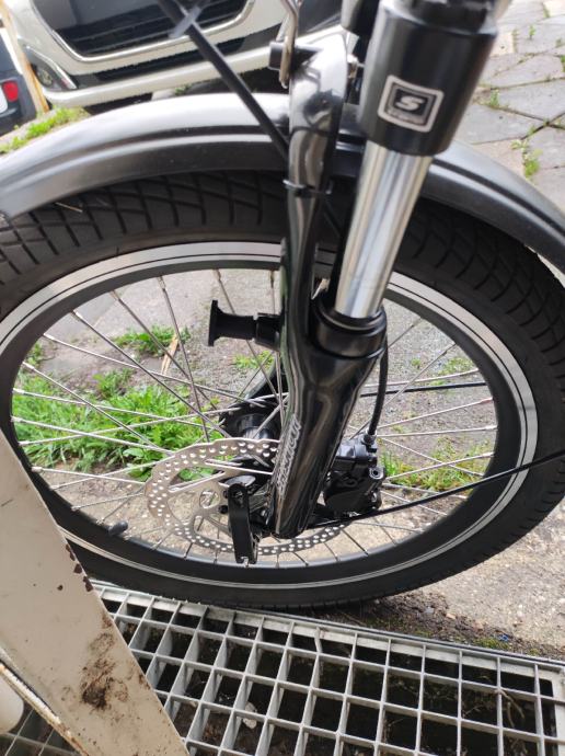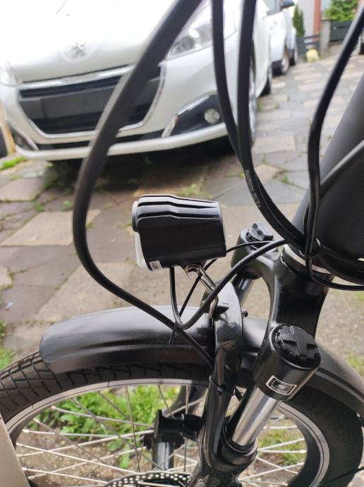 Električni bicikl sklopivi 500W36Vmotor garancija 3 godine,baterija Samsung 36V14Ah ,504Wh sa smart punjače , LCD displaj,putno računalo,tempomat,volan podesiv po visini i nagibu,komforno gel sjedalo sa zaštitom za prostatu i uhrađeni. Led svjetlom,prednje led svjetlo s trubom napajano iz glavne baterije,regenerato no kočenje i punjenje baterije,prednja vilica suspenzijska SR Suntour