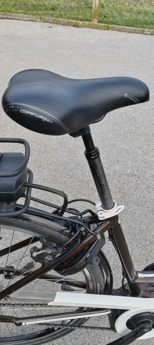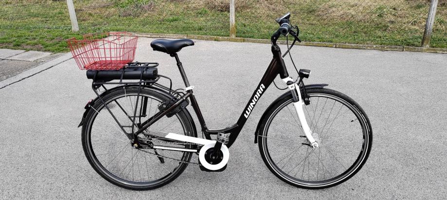Prodajem električni bicikl njemačke tvrtke Winora u stanju novog. Prešao samo 2000 km. Vrhunska oprema. Motor Bosch 250 W/25 km/h, baterija Bosch Power Pack 400 punog kapaciteta kupljena prije 2 godine, jer je stara zbog neupotreljavanja izgubila kapacitet, display Bosch. Autonomija je od 50-200 km, zavisno od stupnja pomoći, težine vozača i uvjeta vožnje (vidljivo na fotografijama). Magura HS11 hidraulične kočnice, 5 brzina u Nexus zadnjoj glavi, amortizer u vilici i sjedalu, originalni punjač i ključevi koji zaključavaju i bicikl (Abus lokot). Nove unutarnje i vanjske gume Schwalbe montirane prije 2 godine. Komforno udobno sjedalo, nosač tereta, pumpa, nogar, zvonce, košara i LED prednje i stražnje svjetlo sa dinamom u prednjem kotaču, neovisno o bateriji.