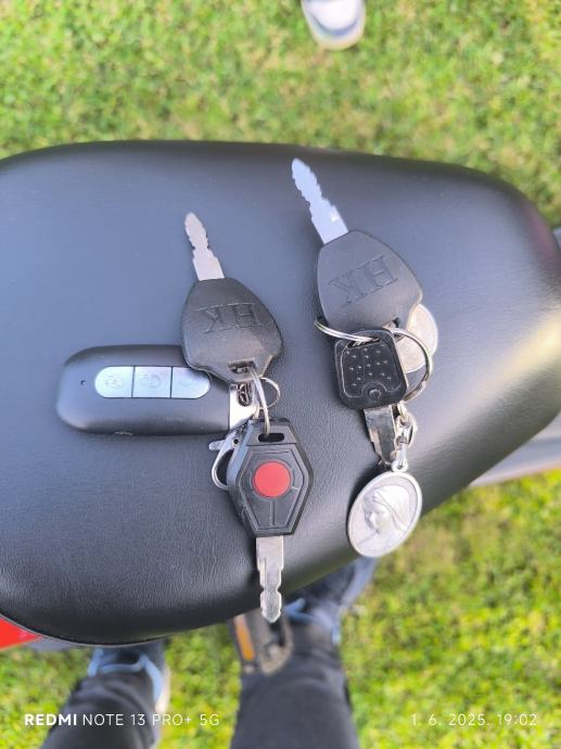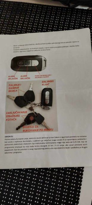 Ima dva seta ključeva i jedan daljinski za alarm i zaključavanje zadnjeg kotača.