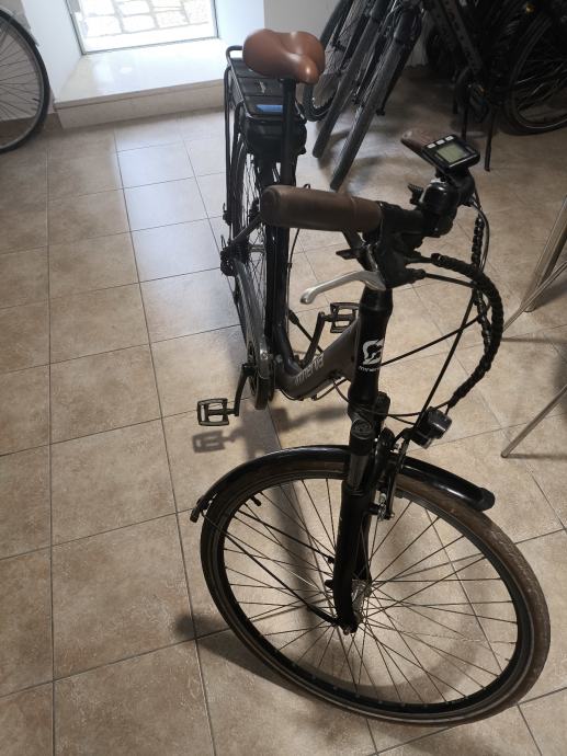 V brake kočnice. Baterija upravo reparirana. Autonomija cca 40 km. Cijena 500 eur. Zvati od ponedjeljka do petka u vremenu od 9 do 14h.