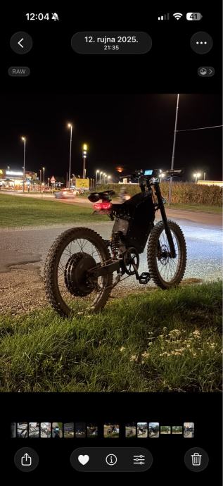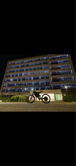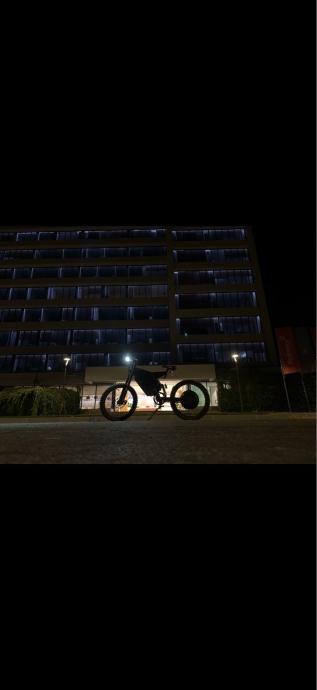 Prodaje se elektro bicikl opremljen trubom, žmigavcima, štop svijetlom, dugim i kratkim svijetlom, hidraulikom, GPS-om te brzim punjačem.