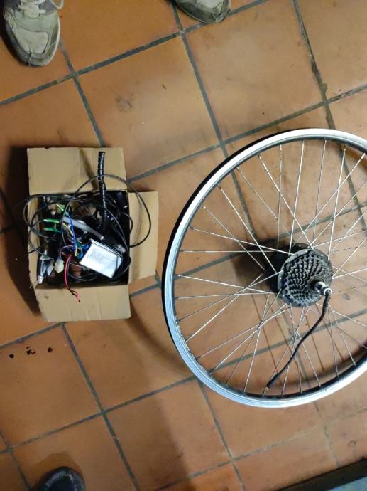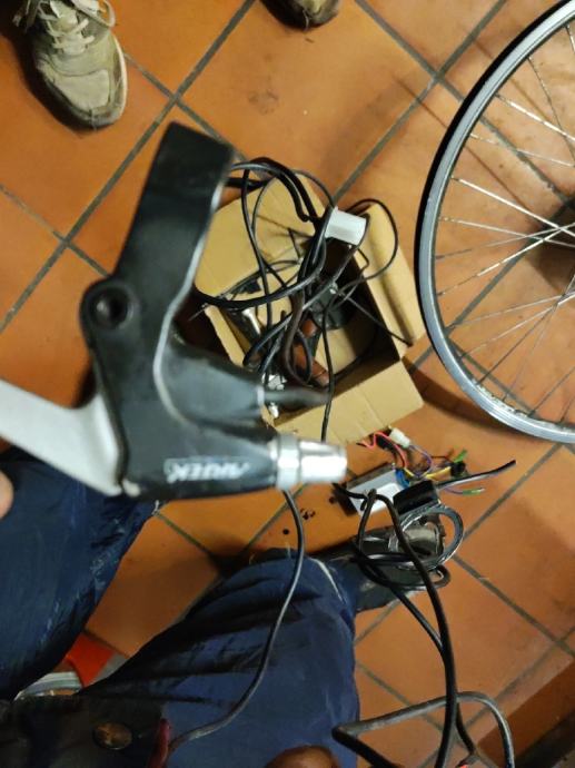 Polovan ospravan el.motor set(pedalec senzor,poluge kočnica s mikro prekidačima,led displej i motor s krancom 7 brzina ma pbruču 28")