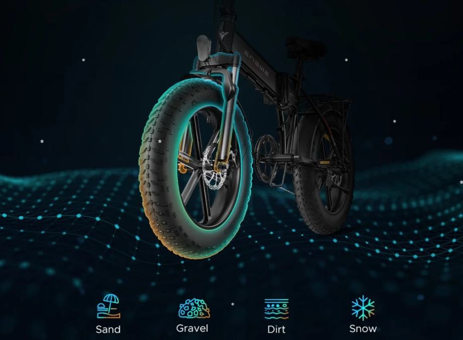 Istaknute su debele gume od 20 x 4 inča koje ENGWE EP-2 Pro pretvaraju u E-Fatbike ili E-Fatty. Velika prednost u odnosu na konvencionalne e-bicikle je visoka sposobnost vožnje izvan ceste e-fatbikes. Široke gume ne nude samo bolje prianjanje, već su obično napunjene samo s 0,2 do 0,8 bara. To pak osigurava posebno učinkovit apsorpcijski učinak.