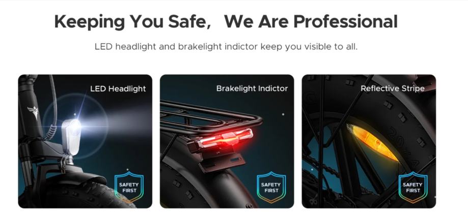 Na prednjim i stražnjim kotačima dostupni su metalni blatobrani. Nosivi prtljažnik služi i kao suvozačko sjedalo, iako ne biste trebali izgubiti iz vida maksimalnu nosivost od 150 kg. Ostale značajke uključuju mehaničke disk kočnice, kočno svjetlo koje se pali kad kočite, i svijetli LED prednje svjetlo.