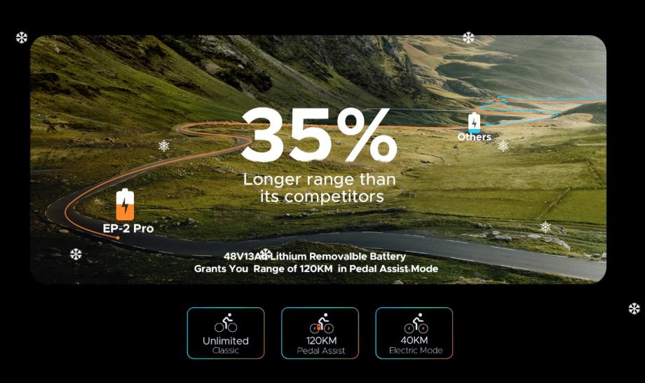 750-vatni pogon stražnjeg kotača čini ENGWE EP-2 Pro pravom zvijeri po performansama što nam govore i mnogobrojne recenzije o ovom biciklu. Zahvaljujući visokih 80 Nm obrtnog momenta, e-bicikl lako kreće.