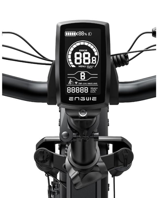 Računalo LCD zaslon (Yolin YL80C) nalazi se u sredini upravljača, a njegov osvijetljeni zaslon ostaje čitljiv čak i u mraku. Prikazuje se brzina, razina baterije, razina pomoći pedalama, ukupni doseg i put s trenutnim dosegom i prosječnom brzinom. Lijevo od zaslona nalazi se bicikl zvono i prekidač ili plus-minus gumb za rad zaslona.