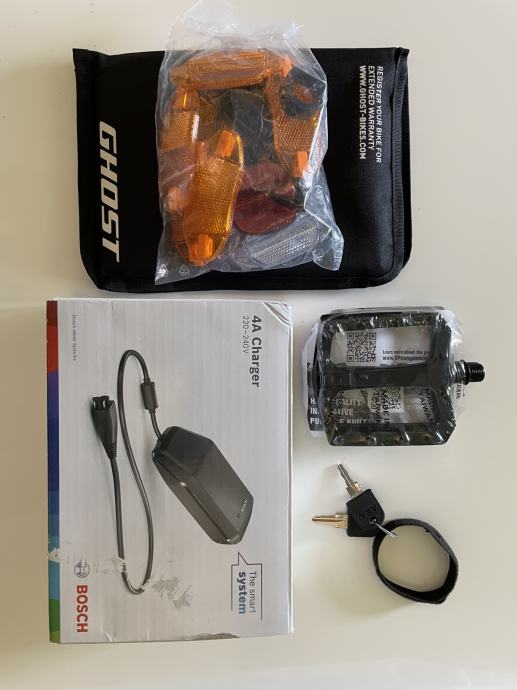 Uz bicikl dolazi punjač od 4A, dva ključa, pedale, dodatna nova prednja guma.