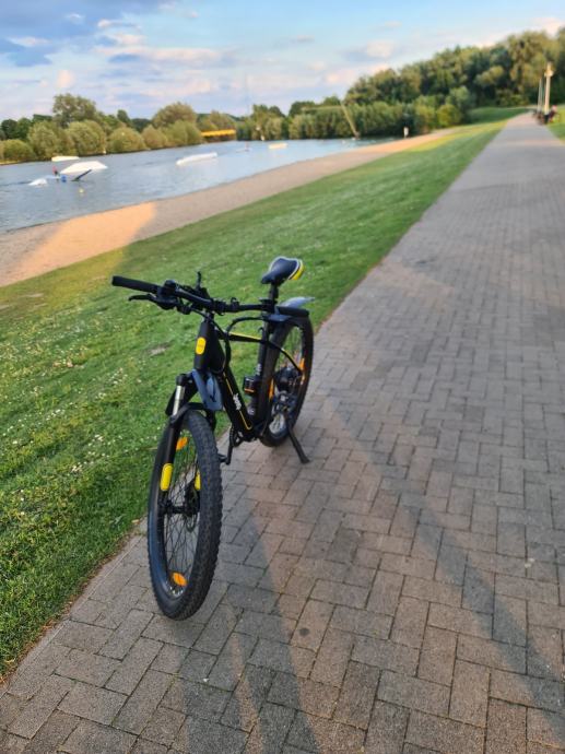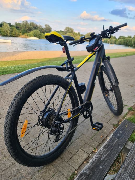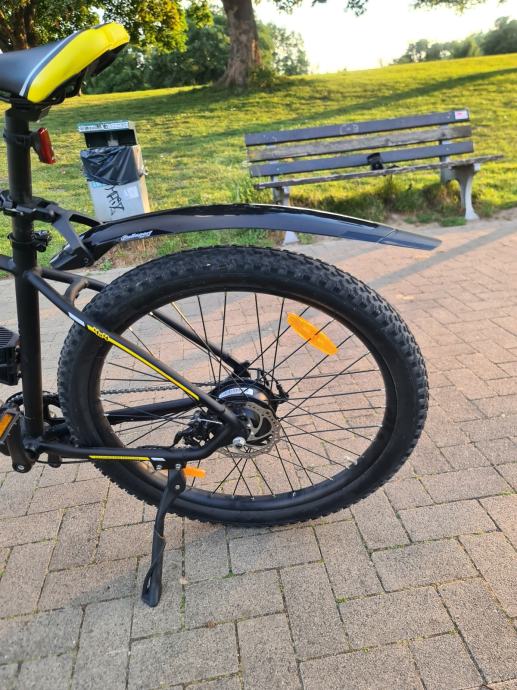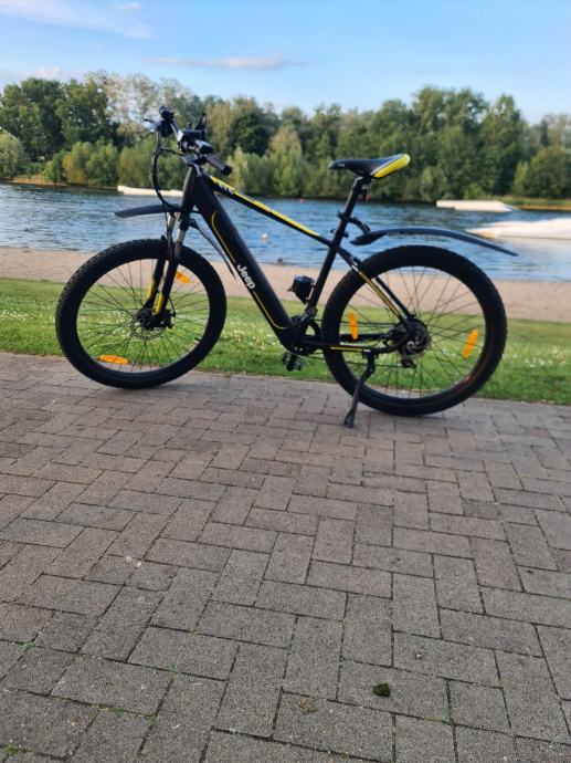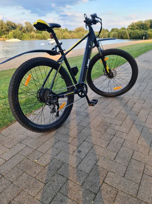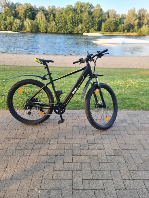 Jeep mountain MHR 7000 e bike. Velicina kotaca 27,5" .Star 4 godine, prijedenih 730 km. Visina rame 48cm. Motor 250w 40nm na straznjem kotacu,disk kocnice,mjenjac 7 brzina shimano,5 stupnjeva el pomoci,pomoc kod guranja,usb prikljucak. Sa jednim punjenjem se moze prijeci 80km zavisi o stupnju pomoci i tezini vozaca. +385918812038