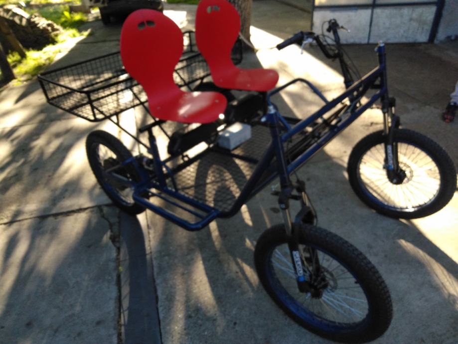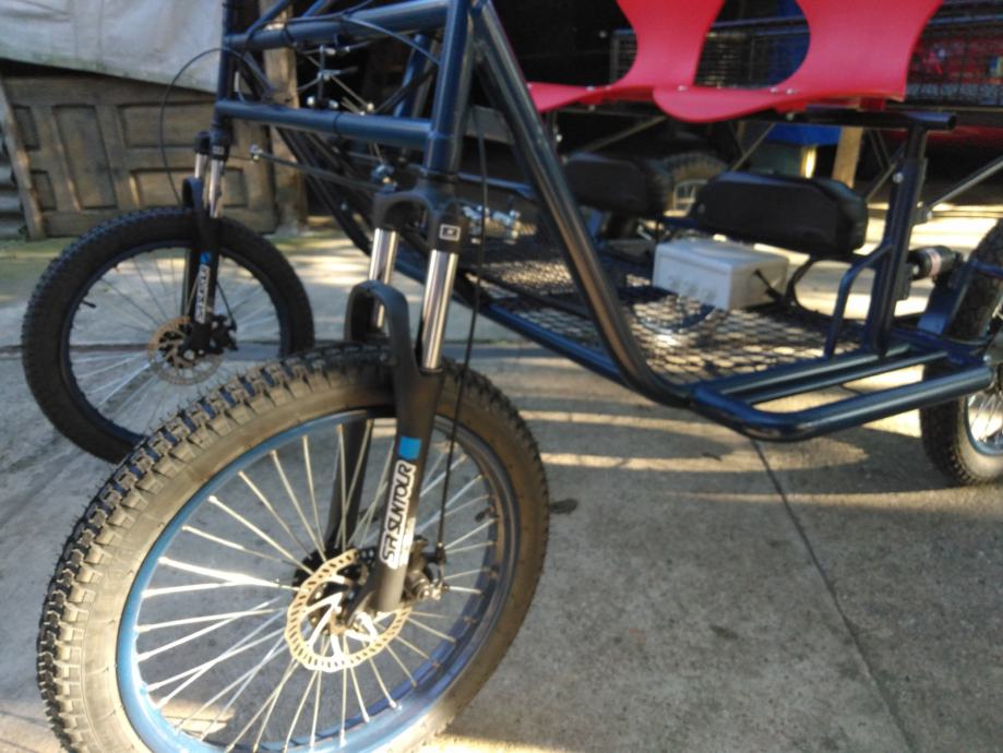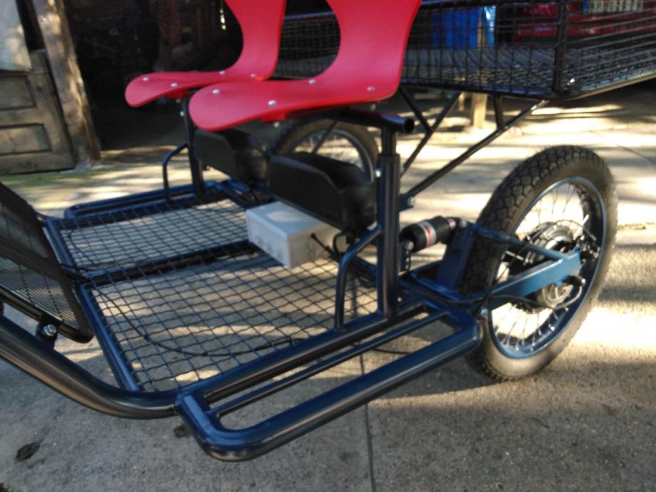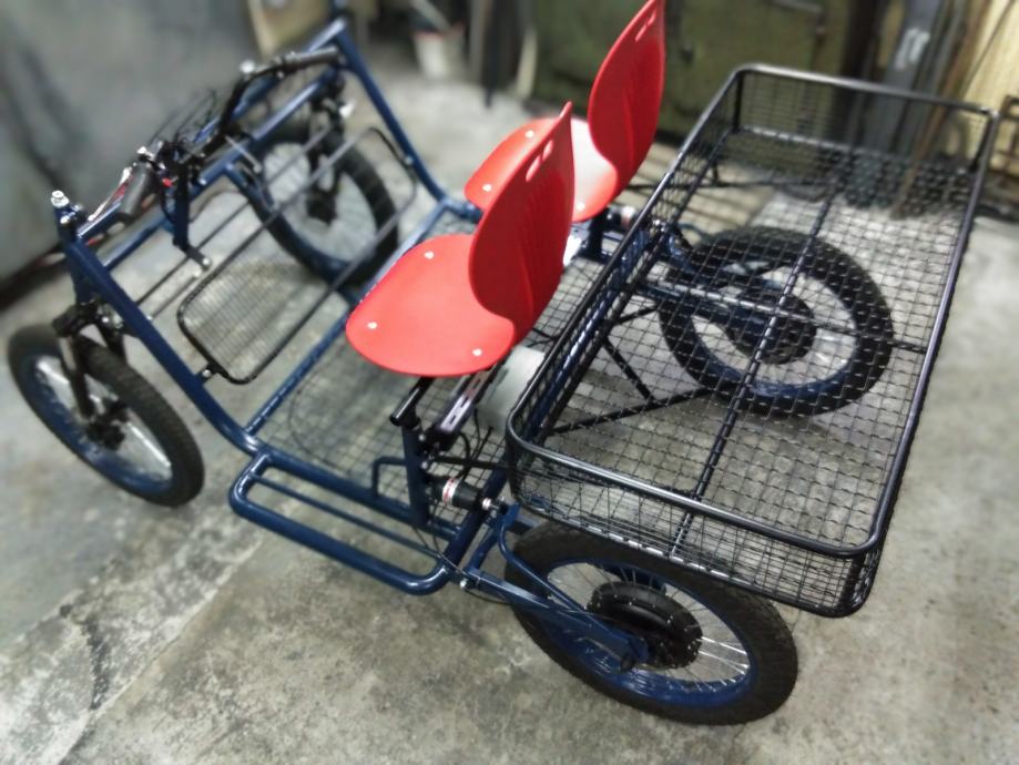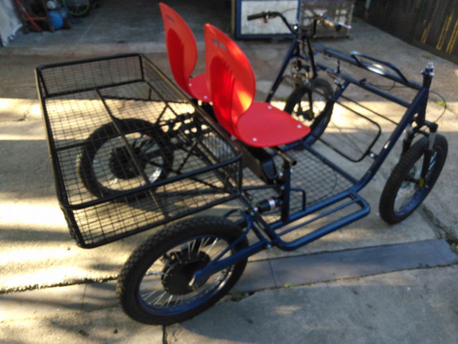 Namenjen za transport ljudstva i tereta u zatvorenim kao i na otvorenom prostoru . Bez emisije izduvnih gasova . CO2 - 0. Pogonjen elektro motorima u zadnjim tockovima 2x1 Kw. Sa hodom napred nazad . Dve baterije po 17.5 Ah. sa autonomijom oko 60 km Maksimalnom brzinom oko 40 km/h i neto nosivosti do 200 kg sa dve osobe + teret . Nezavno ogibljenje na sva cetiri tocka . Tockovo od 18". Mehanicke disk kocnic na sva cetiri tocka spregniti 2+2 . . .