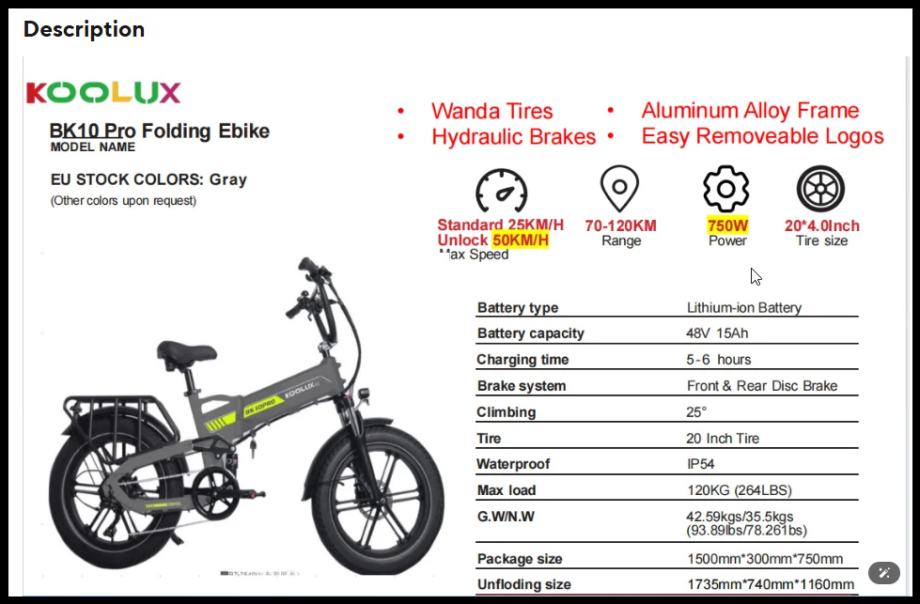 Koolux BK10 PRO, 15 Ah, dupla suspenzija, hidraulične kočnice 750W