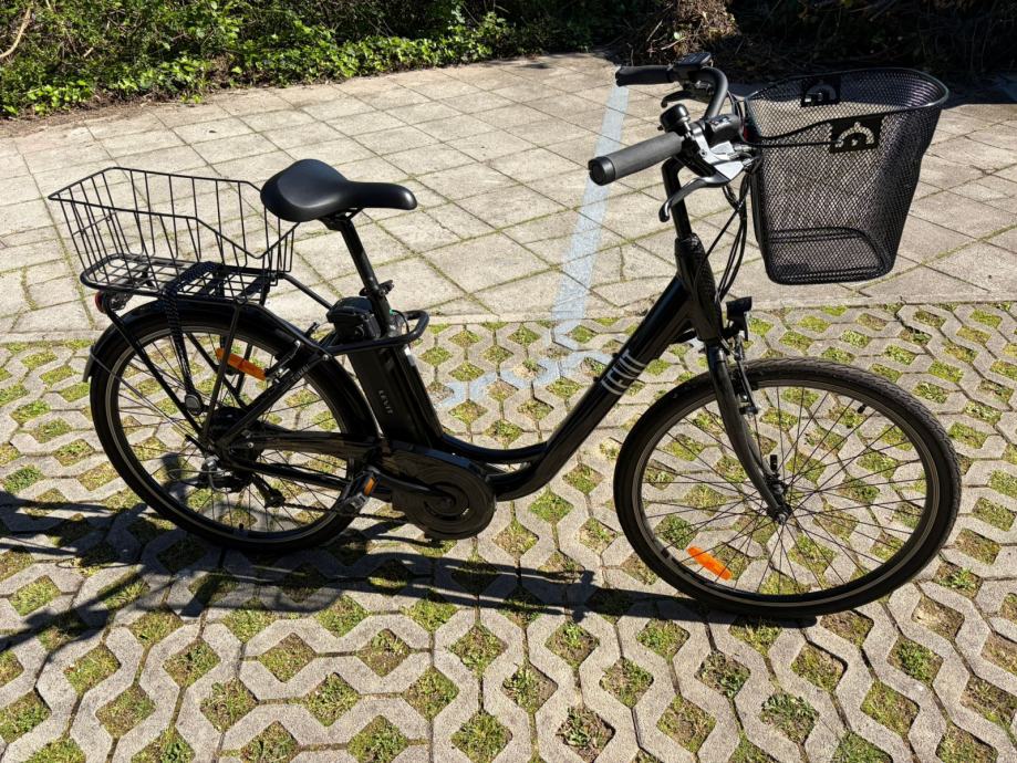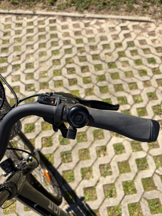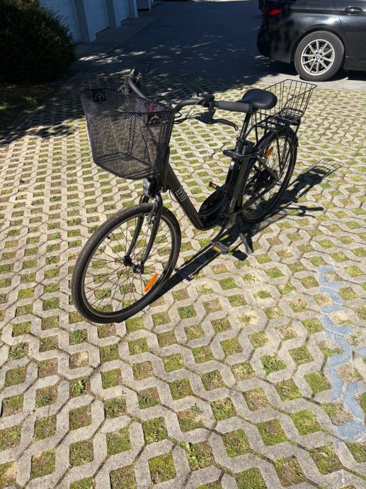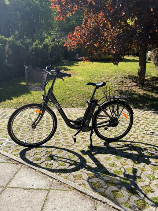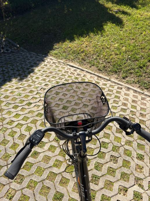 Bicikl je gradski/trekking model, praktičan za svakodnevnu vožnju, odlazak na posao, u trgovinu ili za lagane rekreativne vožnje. Ima niski ulazni okvir, udobno turističko sjedalo, blatobrane, prednju i stražnju košaru te električnu asistenciju s kontrolnom jedinicom na volanu.