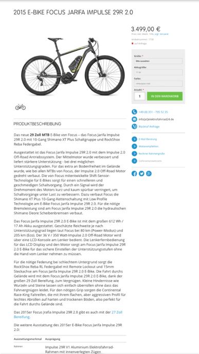 2015 E-BIKE FOCUS JARIFA IMPULSE 29R 2.0