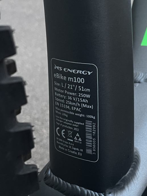Bicikl je napravio samo 60km i bio garažiran. Ima minimalne tragove korištenja isključivo kod brave za bateriju (vidljivo na fotografiji).