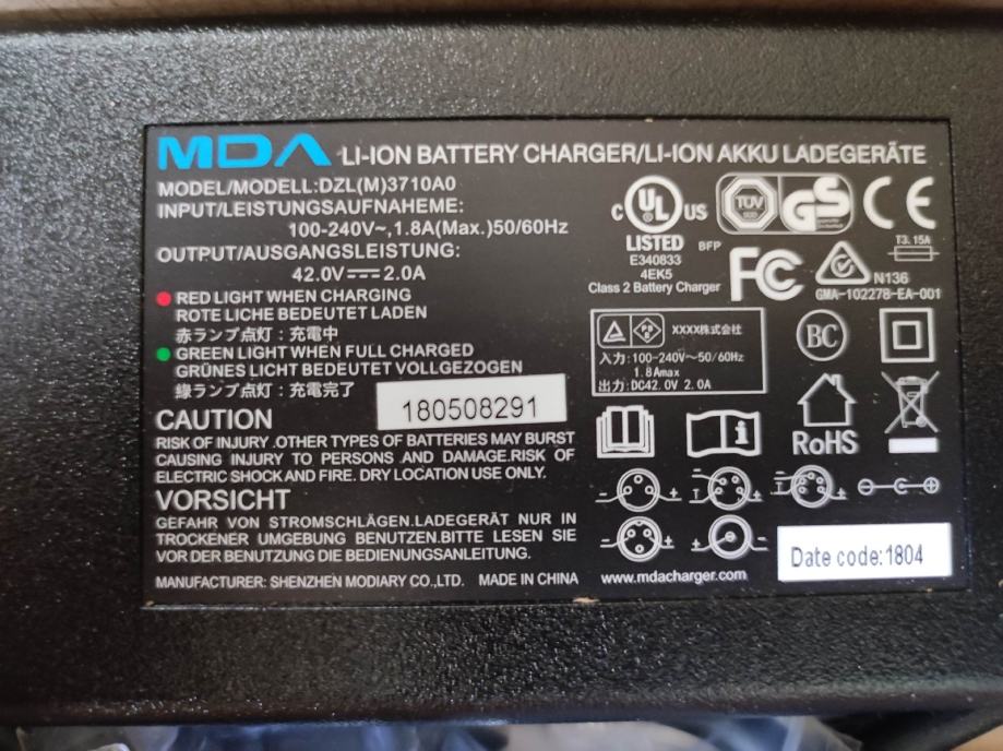 Punjač za bicikle sa Fazua motorom,36V2A nov