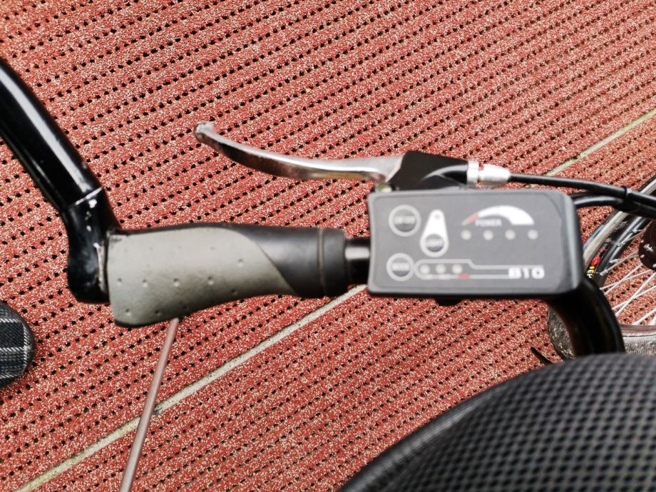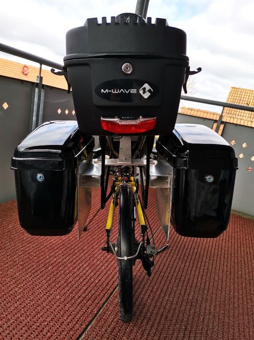 Sprijeda MTB kromirana vilica za prednji kotač u kome je motor od 1000 W.