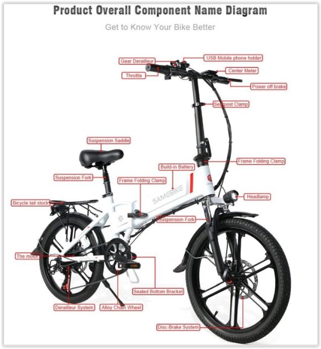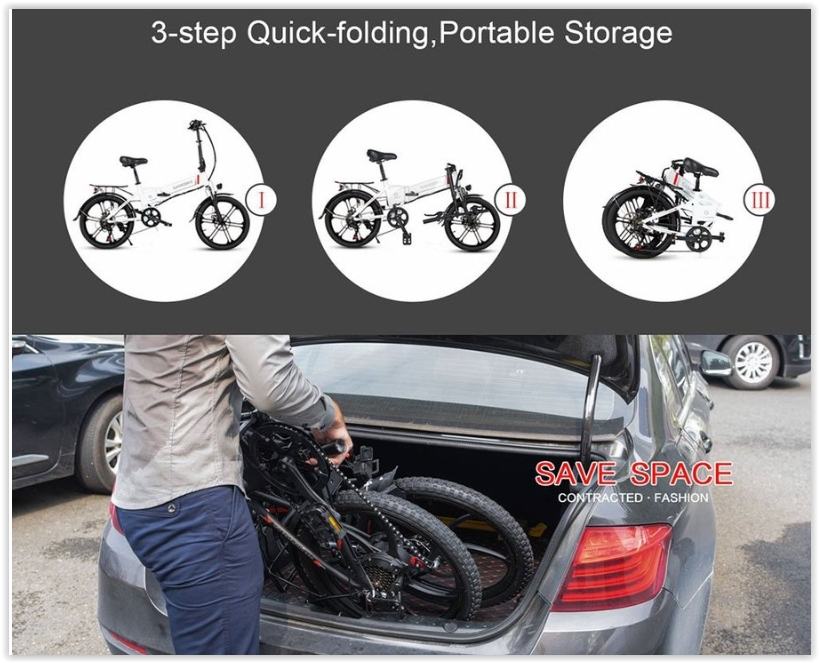 ● Sklopiv dizajn ( dimenzije kada je bicikl složen: 103 x 37 x 104cm ) za lakši transport
