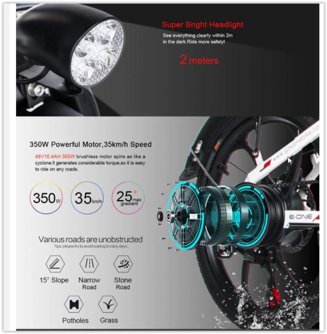 ● 350W motor osigurava max 30km/h na 30 stupnjeva usponu