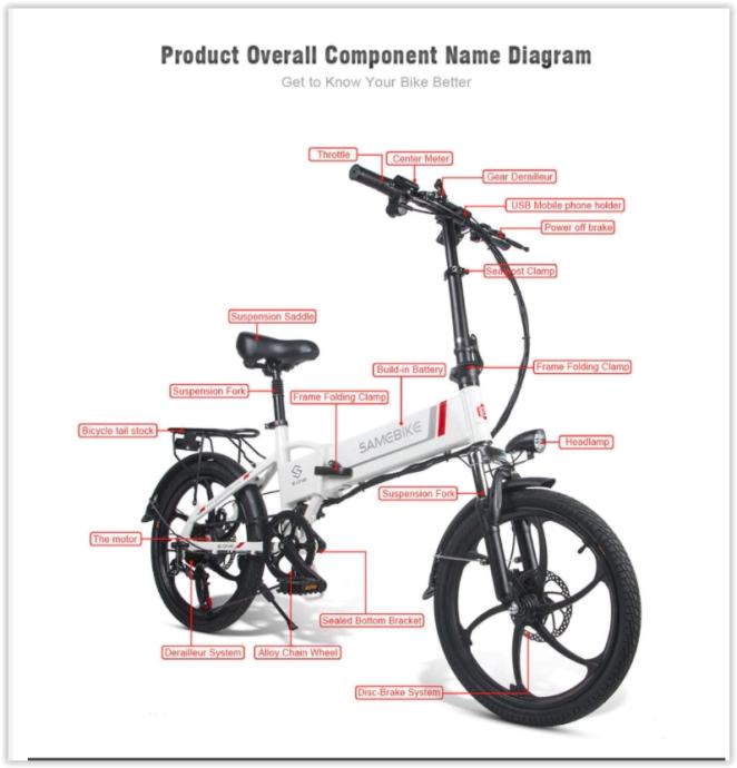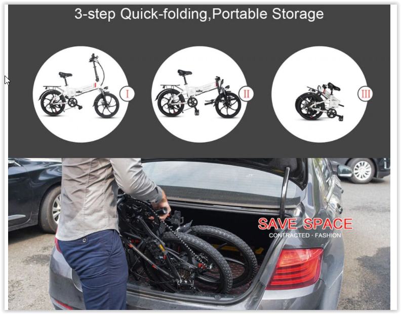 ● Sklopiv dizajn ( dimenzije kada je bicikl složen: 103 x 37 x 104cm ) za lakši transport