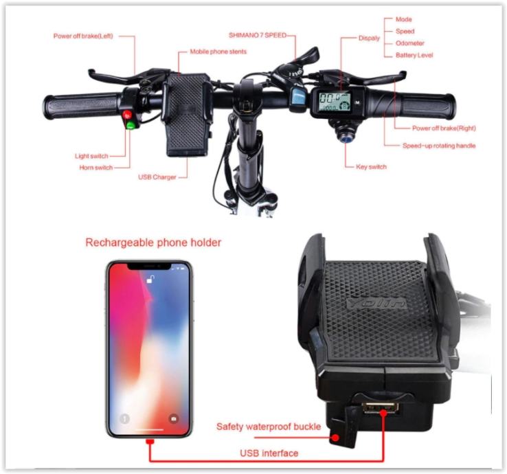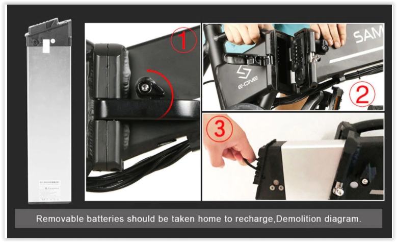 ● 10.4Ah / 48V Li-ion baterija ( ukčljučena u isporuku ) za max 40km udaljenost u čistom električnom modu i 70km udaljenost u modu gdje električni motor pomaže u vožnji