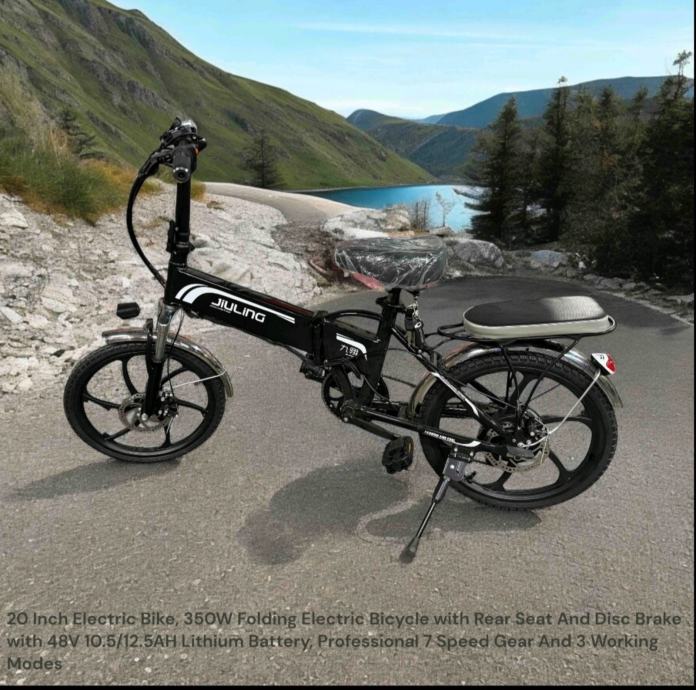 Alu rama, prednji amortizer. Baterija 48v, 10.5Ah. Motor 350w, 25kmh,kotači 20".Mjenjač Shimano 7 brzina, na pedale i gas.LCD display.Prednje i stražnje led svjetlo. Disk kočnice.
