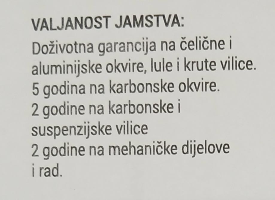 Doživotna garancija na okvir i guvernal.