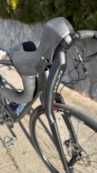 Na biciklu je kompletno grupa SHIMANO GRX (ručke, kočnice, menjač)