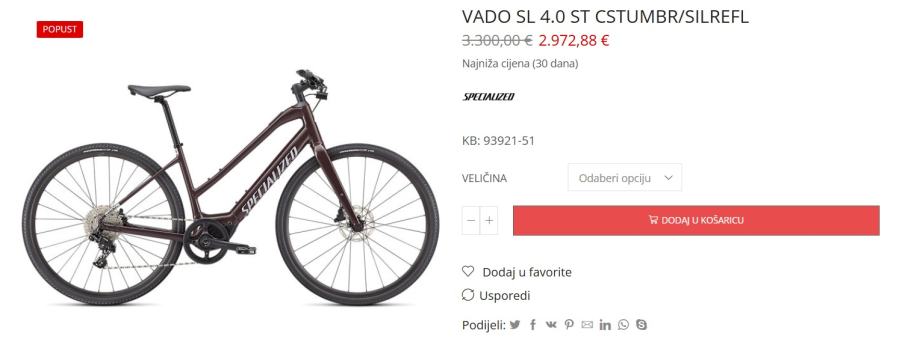 SPECIALIZED VADO SL 4.0 električni bicikl - KAO NOV - MOGUĆE NA RATE