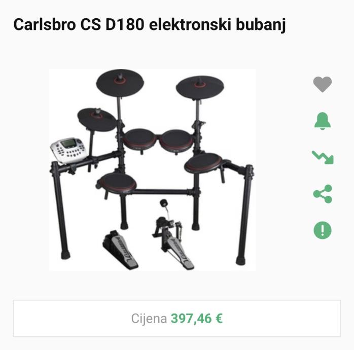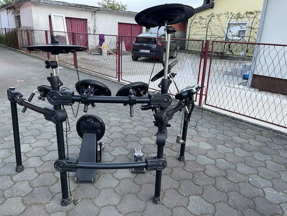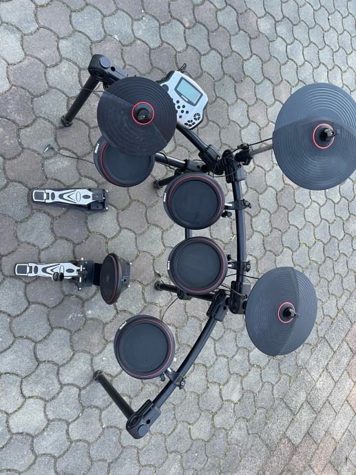 Prodajem elektronski bubanjski set Carlsbro CS D180, savršen za početnike i kućnu upotrebu. Set uključuje sve što je potrebno za sviranje: padove za bubnjeve i činele, pedale, stalak i zvučni modul s brojnim ugrađenim zvukovima i ritmovima. Mogućnost sviranja preko slušalica omogućuje tihu vježbu bez ometanja okoline.
