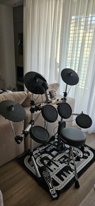 Komplet sa rampom, kablovima, modulom, pedalama, bubnjarskom stolicom i prijenosna torba.