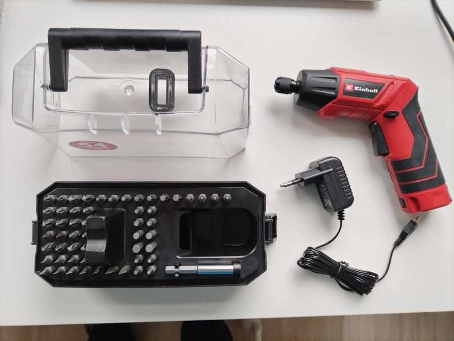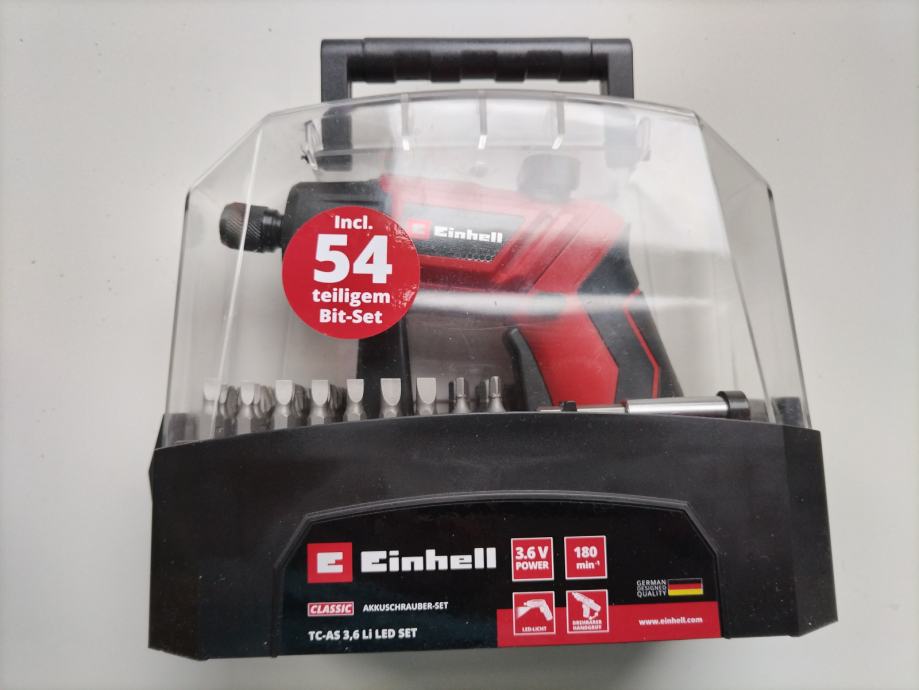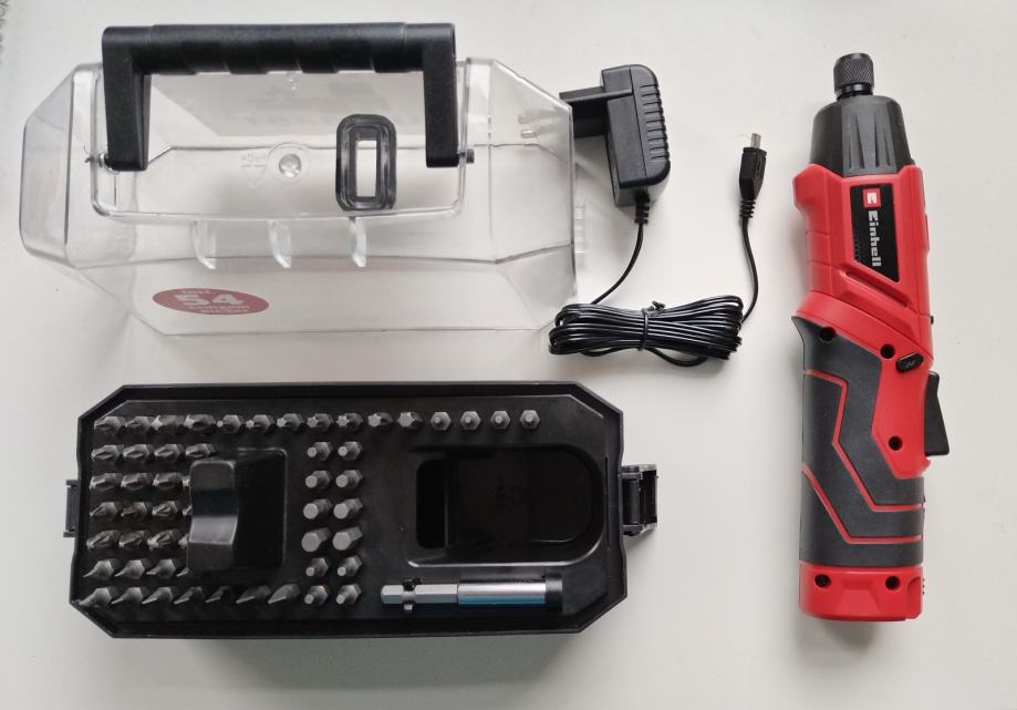 Einhel set,akumulatorski odvijač sa 54 nastavka(bita),ima ugrađene i 2 led sijalice,jedna radna i druga kao lampa ....