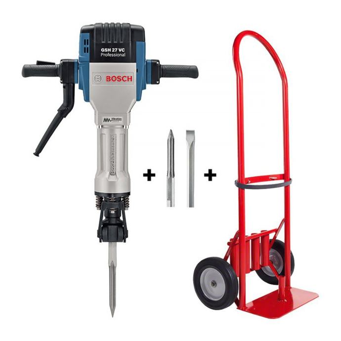BOSCH udarni čekić GSH 27 VC + transportna kolica + 2 dlijeta