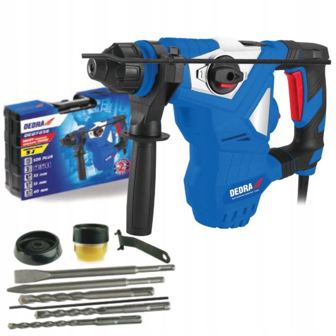 udarna bušilica namijenjena je za udarno bušenje betona, armiranog betona i drugih građevinskih materijalanamijenjen je i lakšim klesarskim radovima3 načina rada omogućuju korištenje ovog uređaja i za bušenje materijala kao što su drvo ili metalsve je upakirano u funkcionalni koferSDS + stezna glava (SDS plus)gumirana ručkaTehnički podaci: napon: 230 V / 50 Hzsnaga: 1500 Wenergija udarca: 5 Jbrzina: 4500 BPMbrzina: 930 RPMvrsta stezne glave: SDS +maksimalni promjer bušenja u drvu: 40 mmmaksimalni promjer bušenja u metalu: 13 mmmaksimalni promjer bušenja u betonu: 32 mmtežina: 4,9 kg]]>