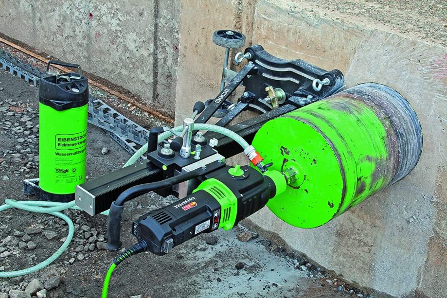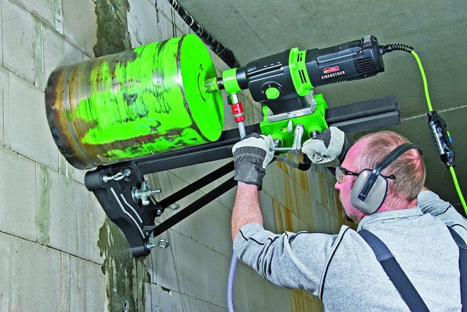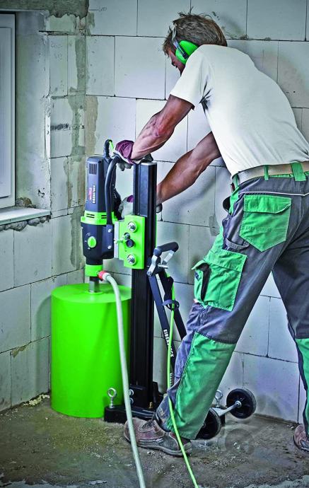 Ponuda dijamantne tehnike, mokro suho bušenje, tri brzine, Eibenstock DBE352 dijamantna bušilica+ Eibenstock BST352V stalak za bušilicu. Namijenjena je za bušenje velikih otvora u betonu, cigli i kamenu. Beton može biti armiran željeznom mrežom do promjera 8mm.